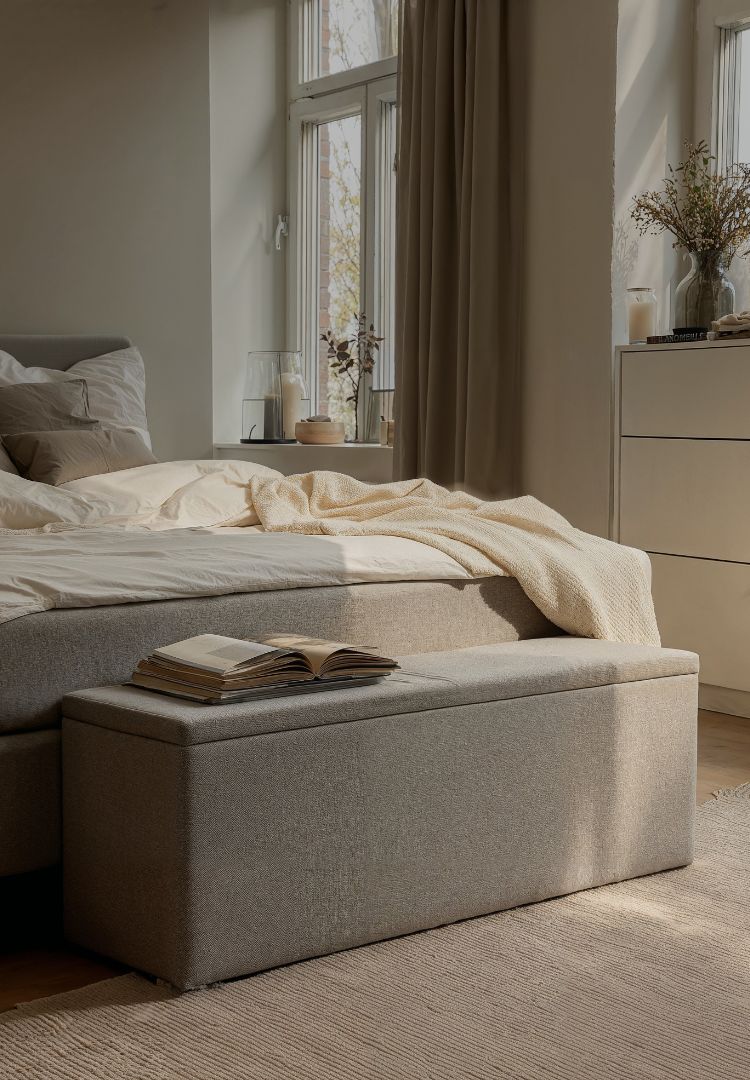 Practical and stylish at the same time: the BRUNO storage bench impresses with its upholstered seat, generous storage space, and high-quality textured fabric — perfect for a harmonious bedroom upgrade.