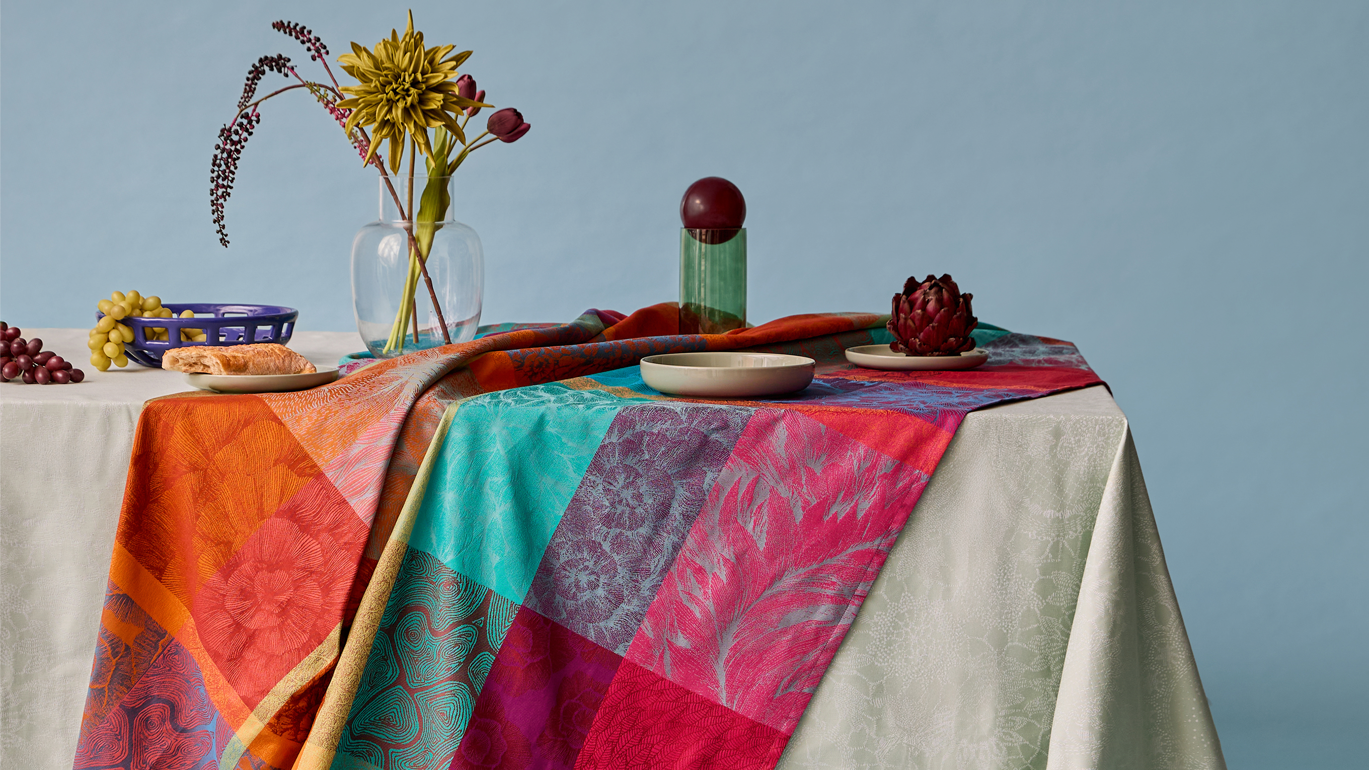 Garnier Thiebaut combines the finest materials such as linen and cotton sateen with traditional jacquard weaving. In its in-house workshop in the Vosges, home textiles are created in vibrant colours. Signature look: the iconic Mille patterns with their intricate, floral all-over designs.