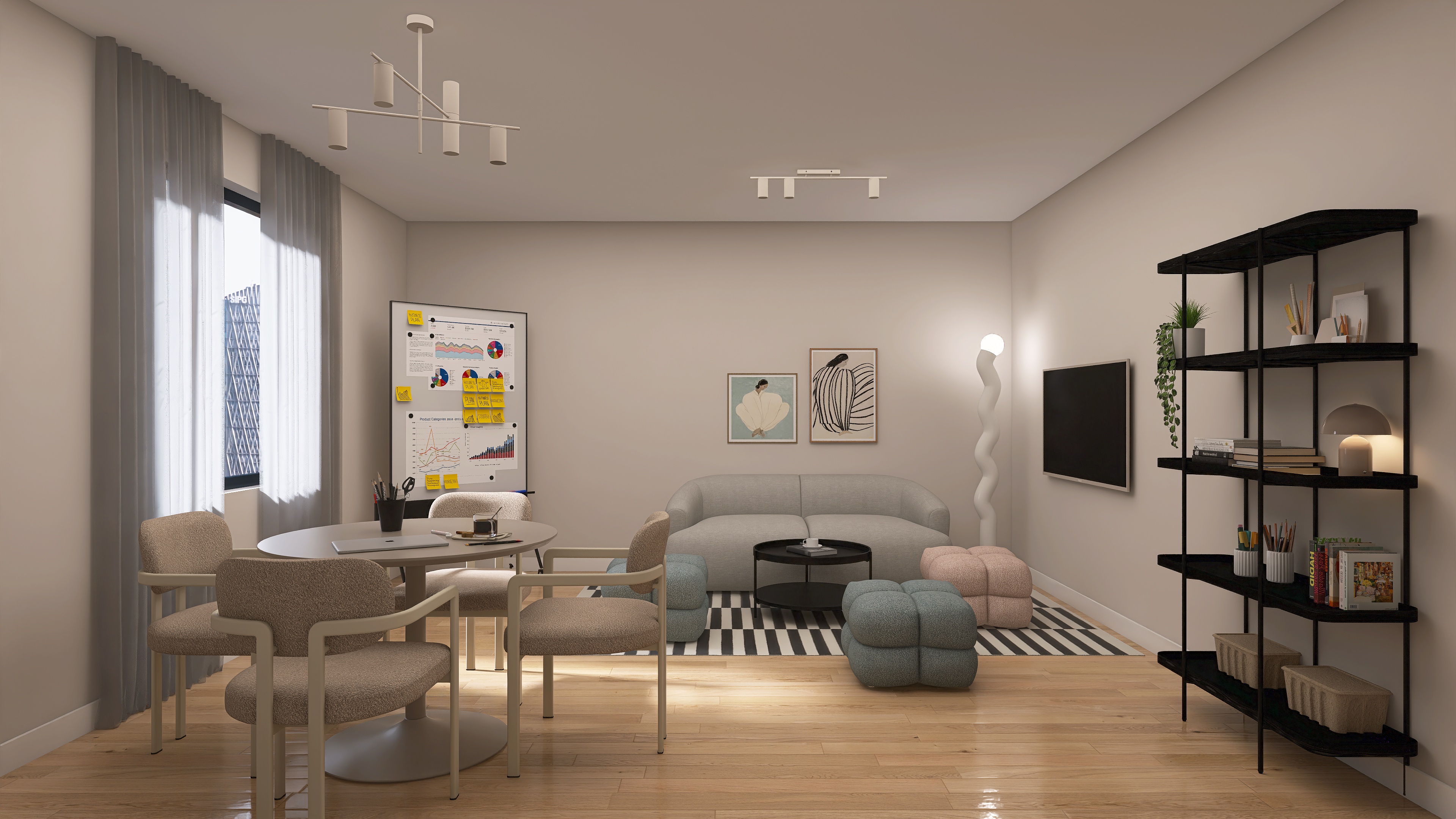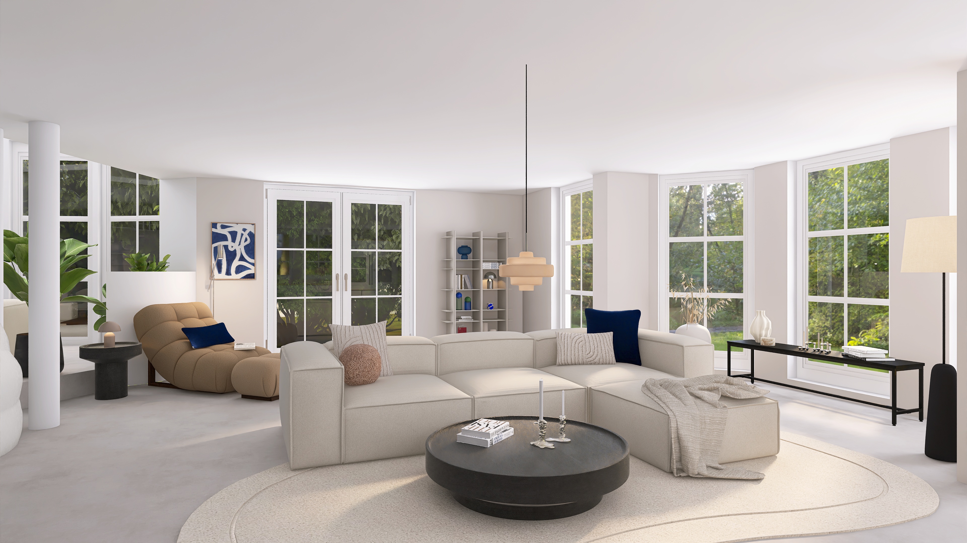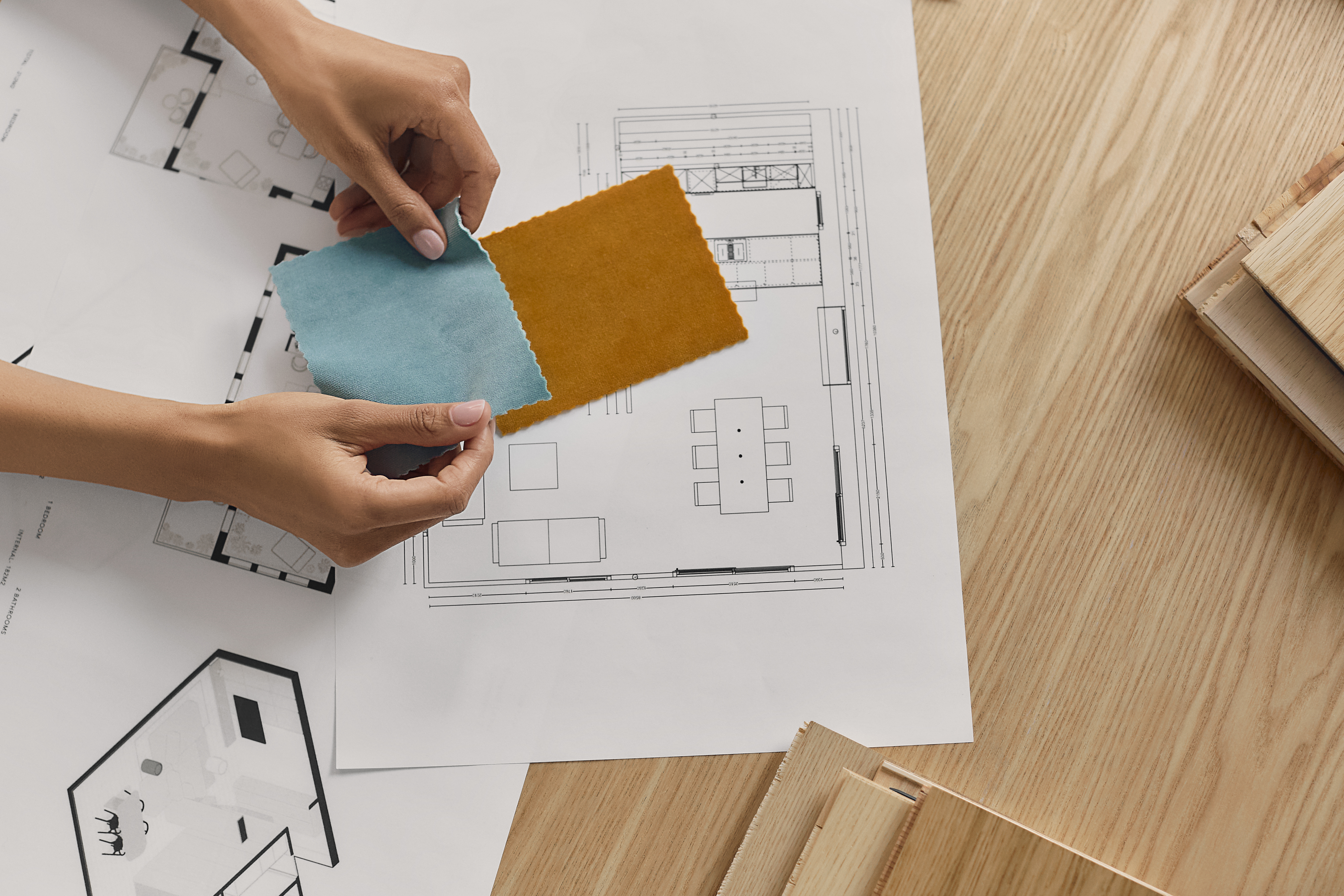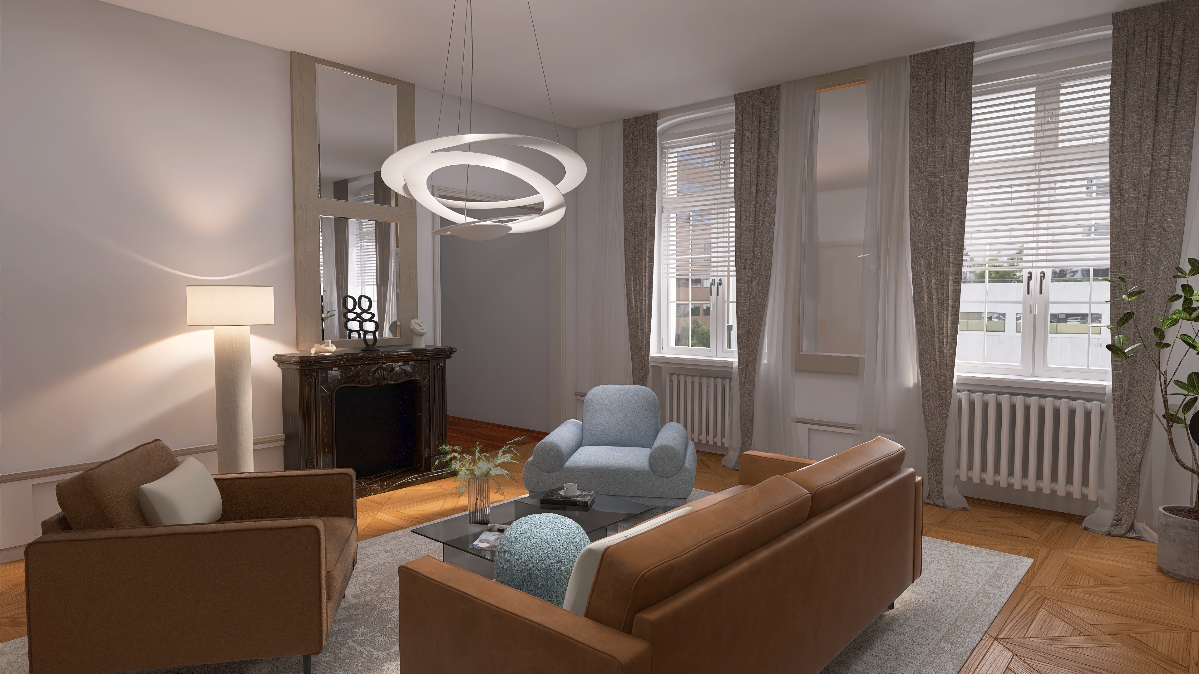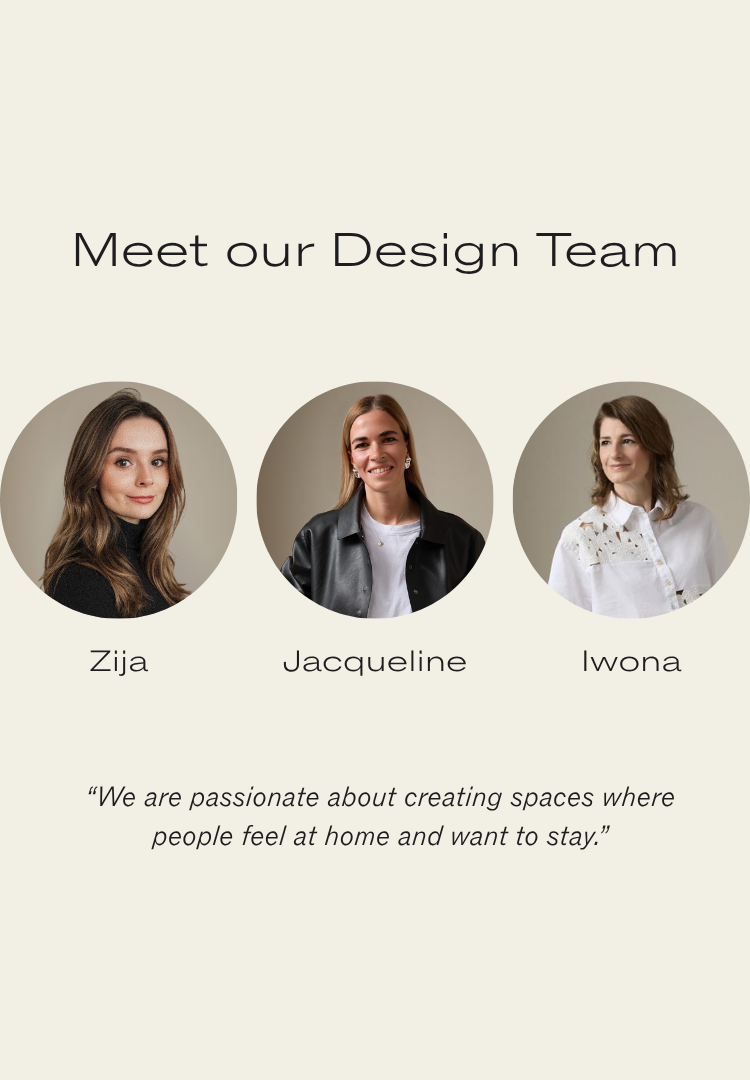 We create a mood board with a floor plan, colour and material concept, lighting and refine the design in two stages.