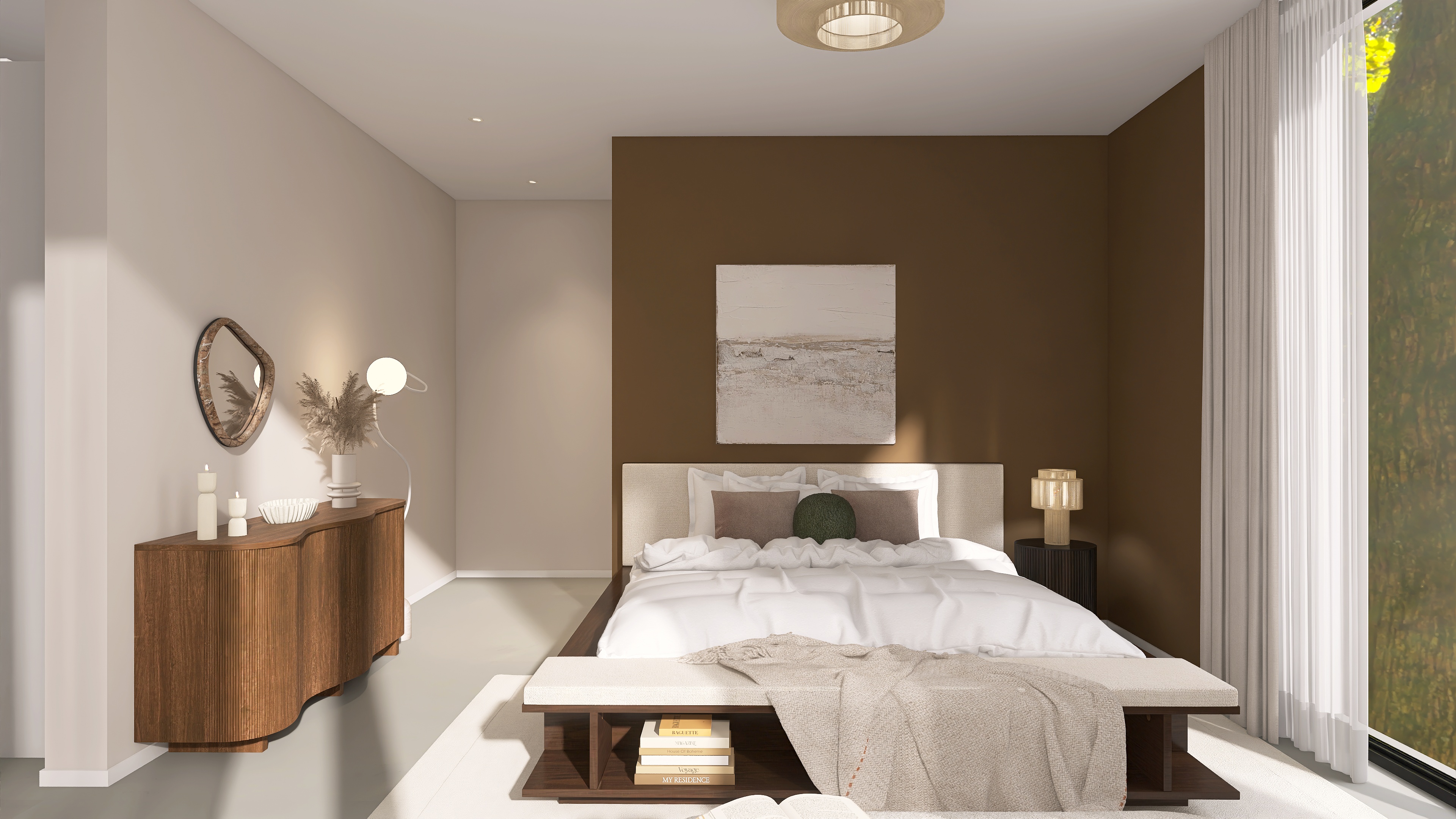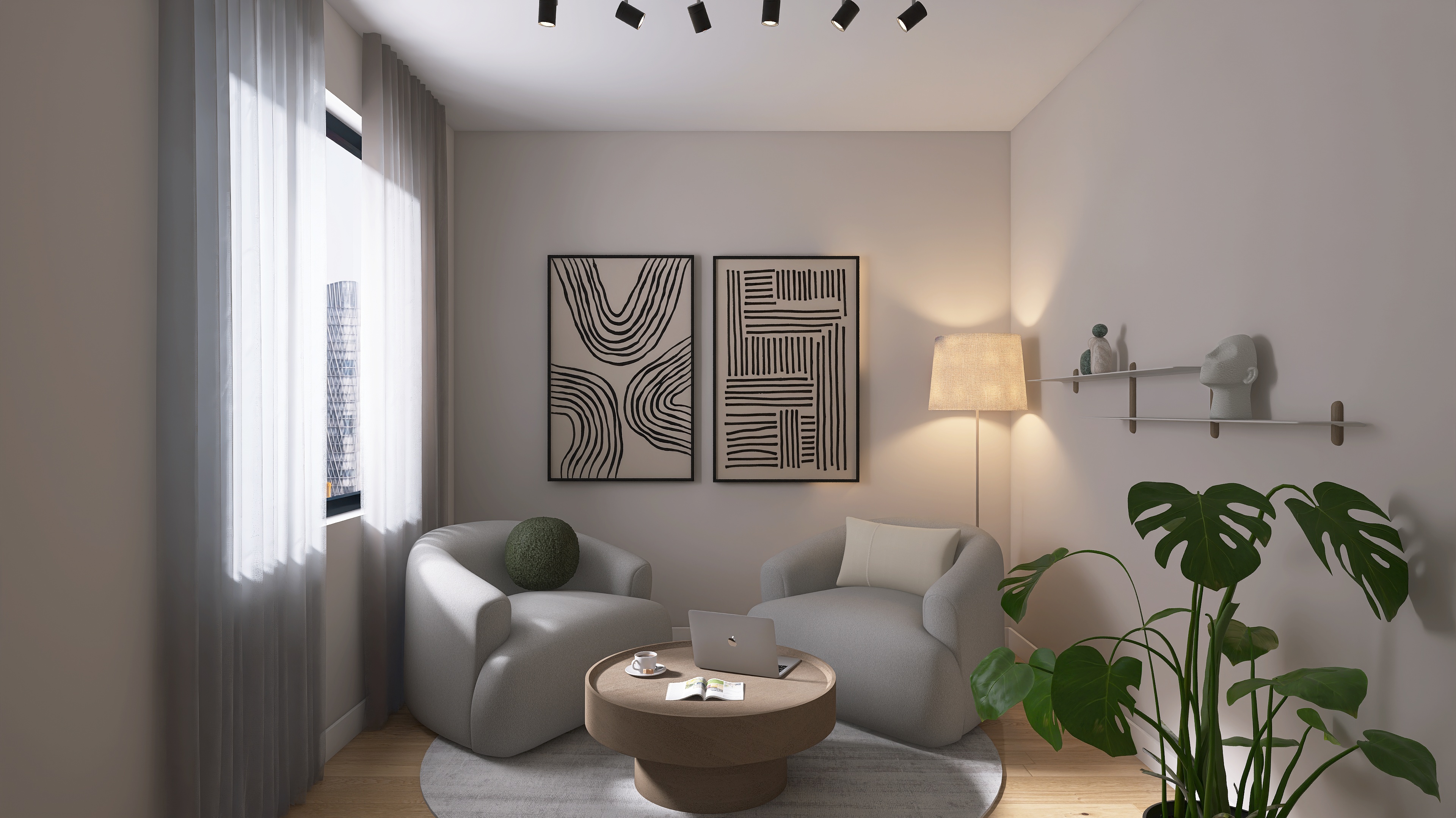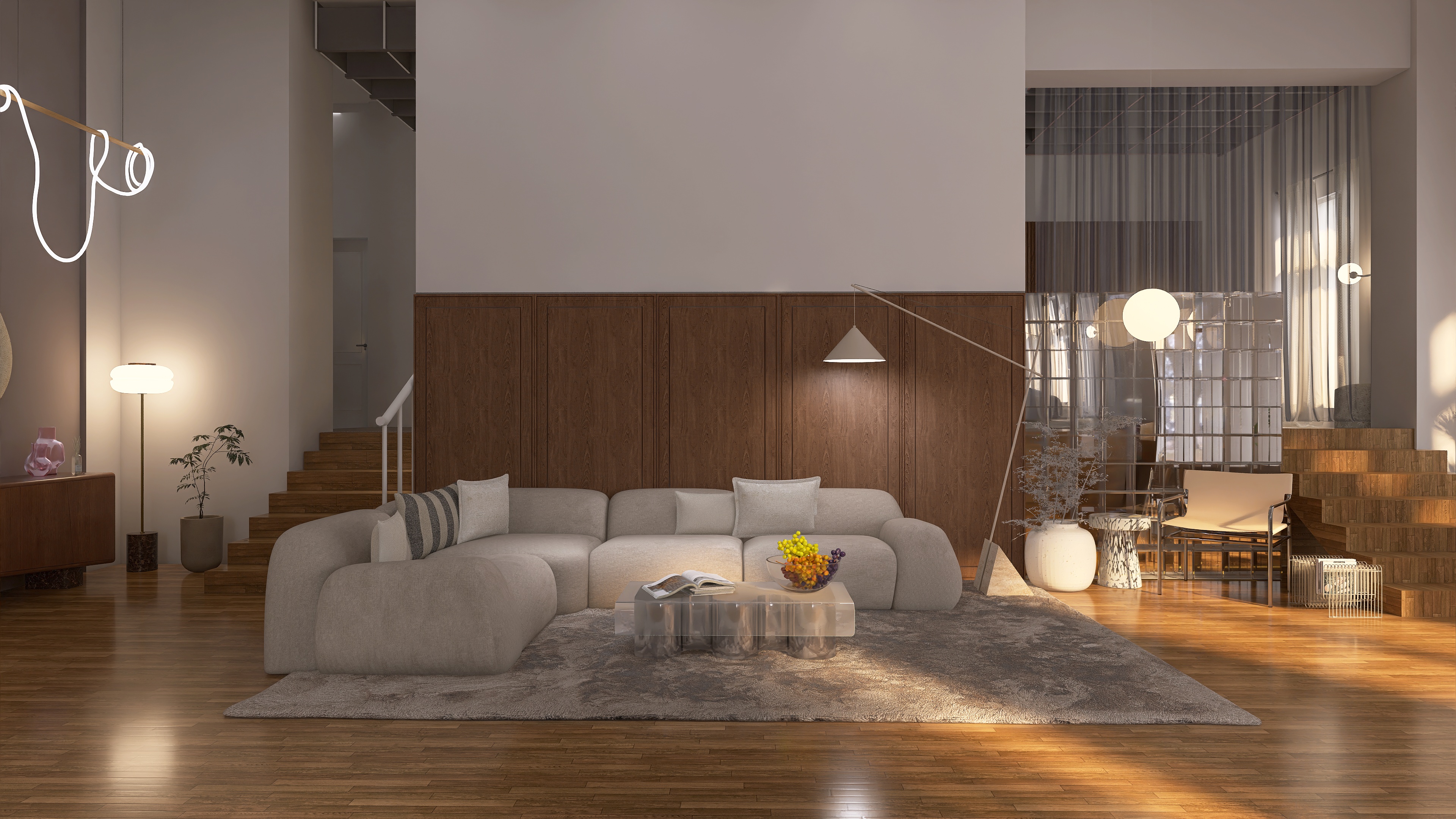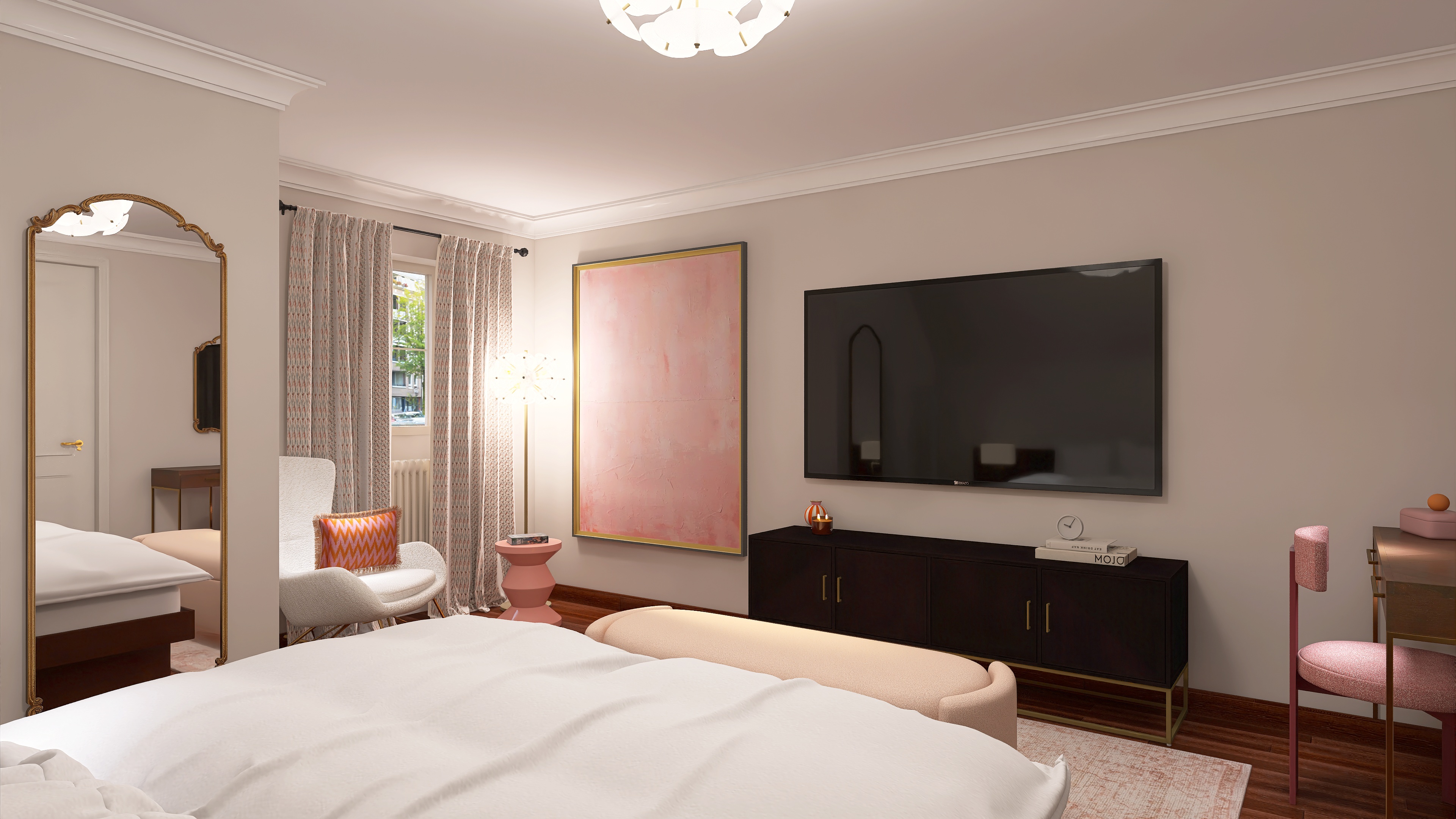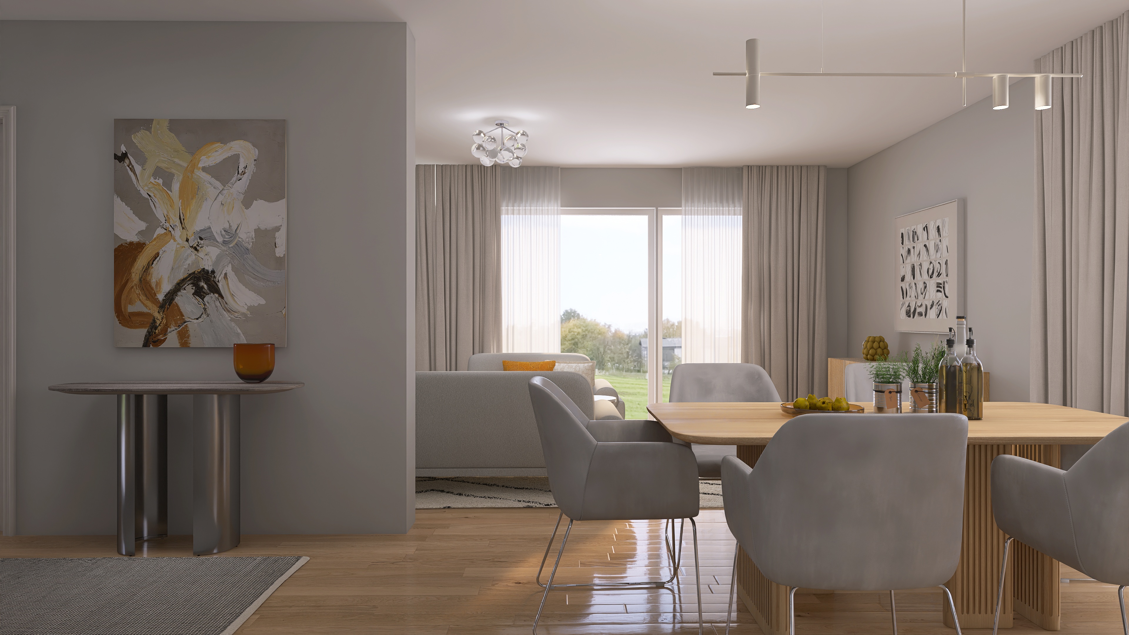 We create a mood board with a floor plan, colour and material concept, lighting and refine the design in two stages.