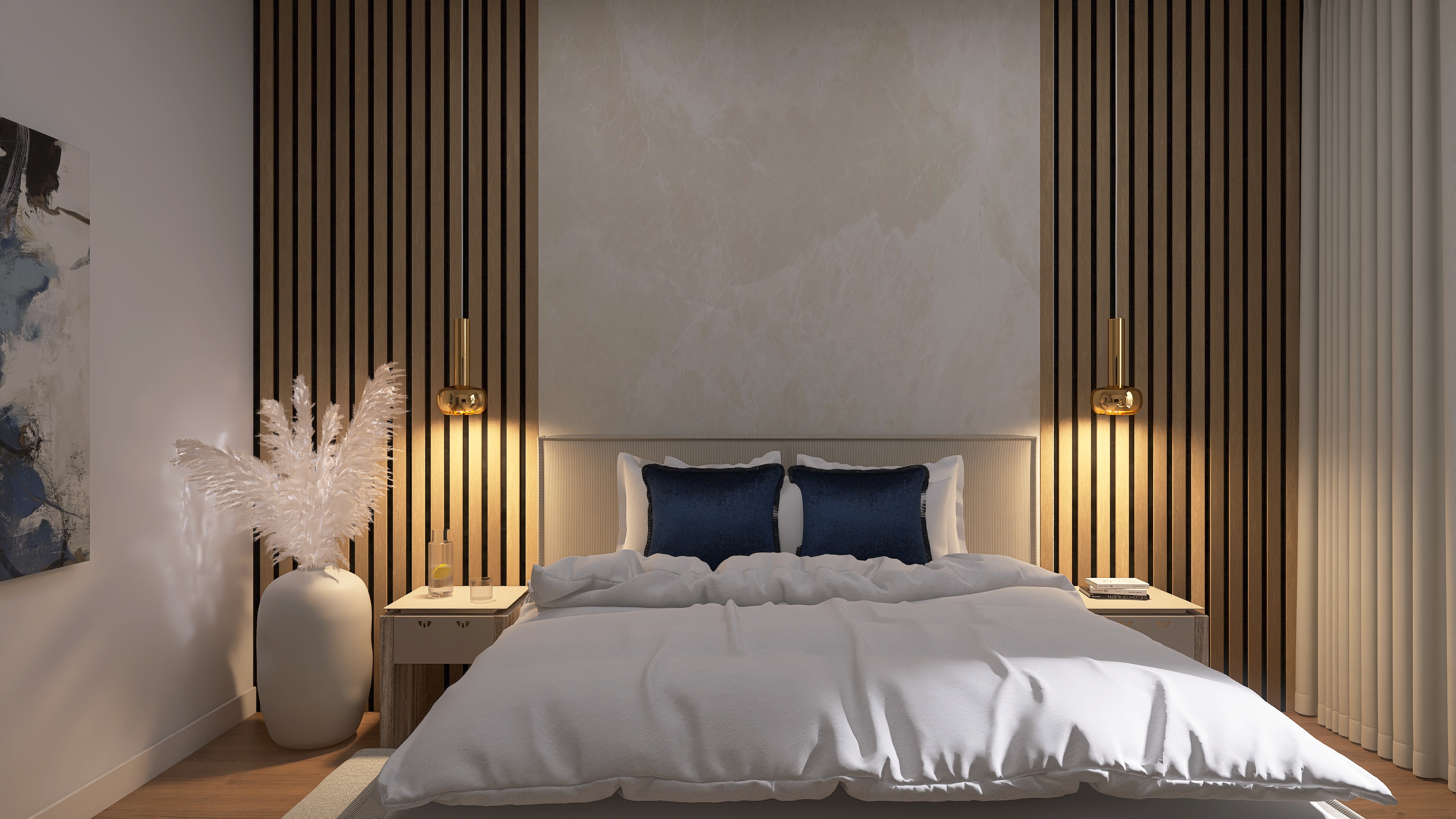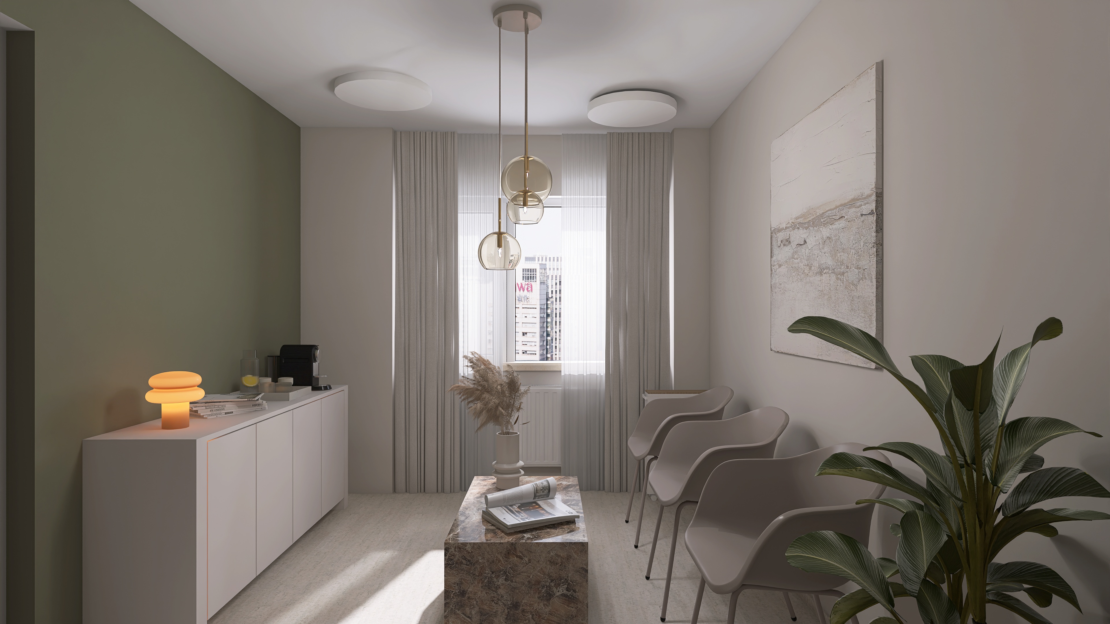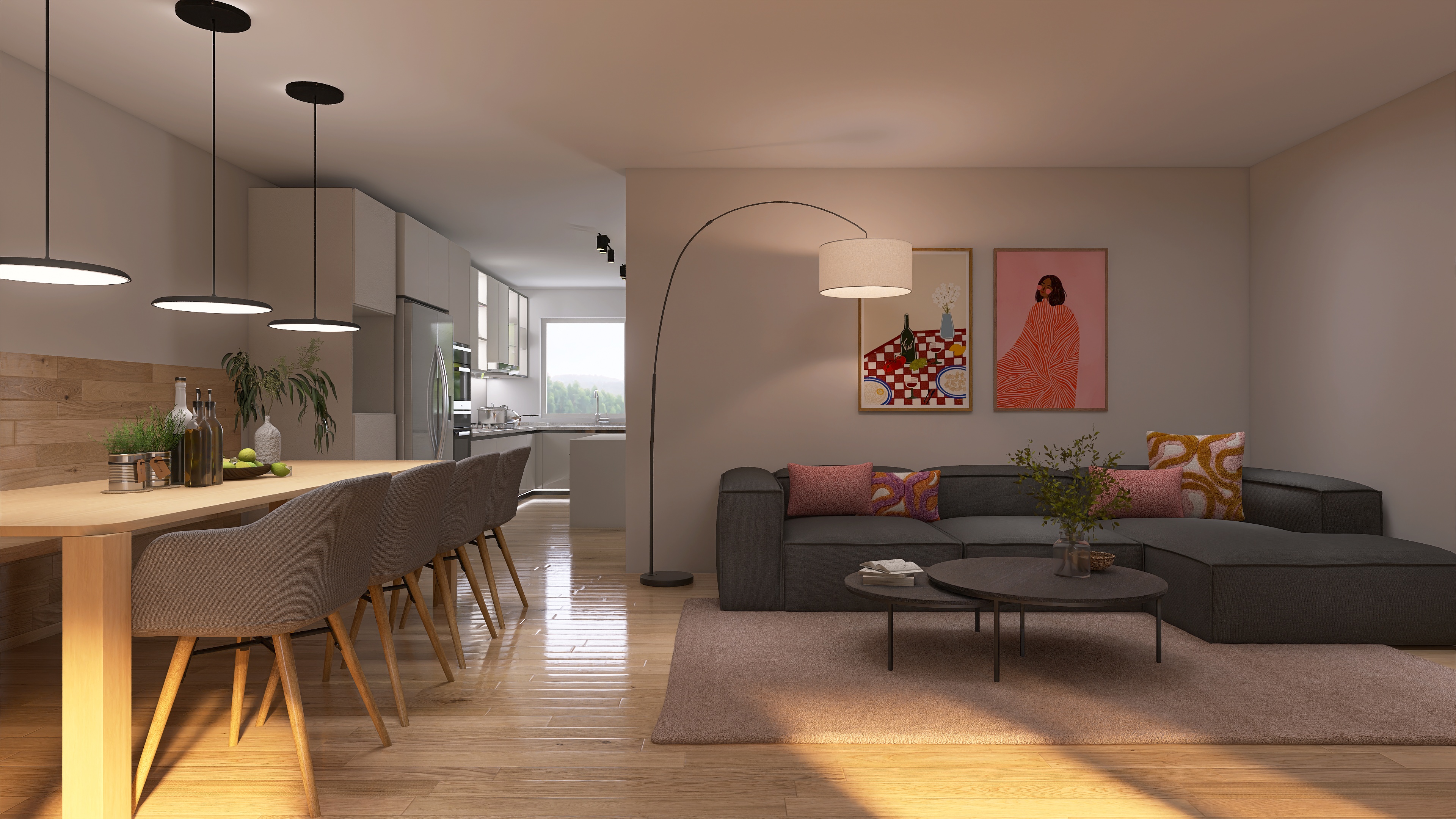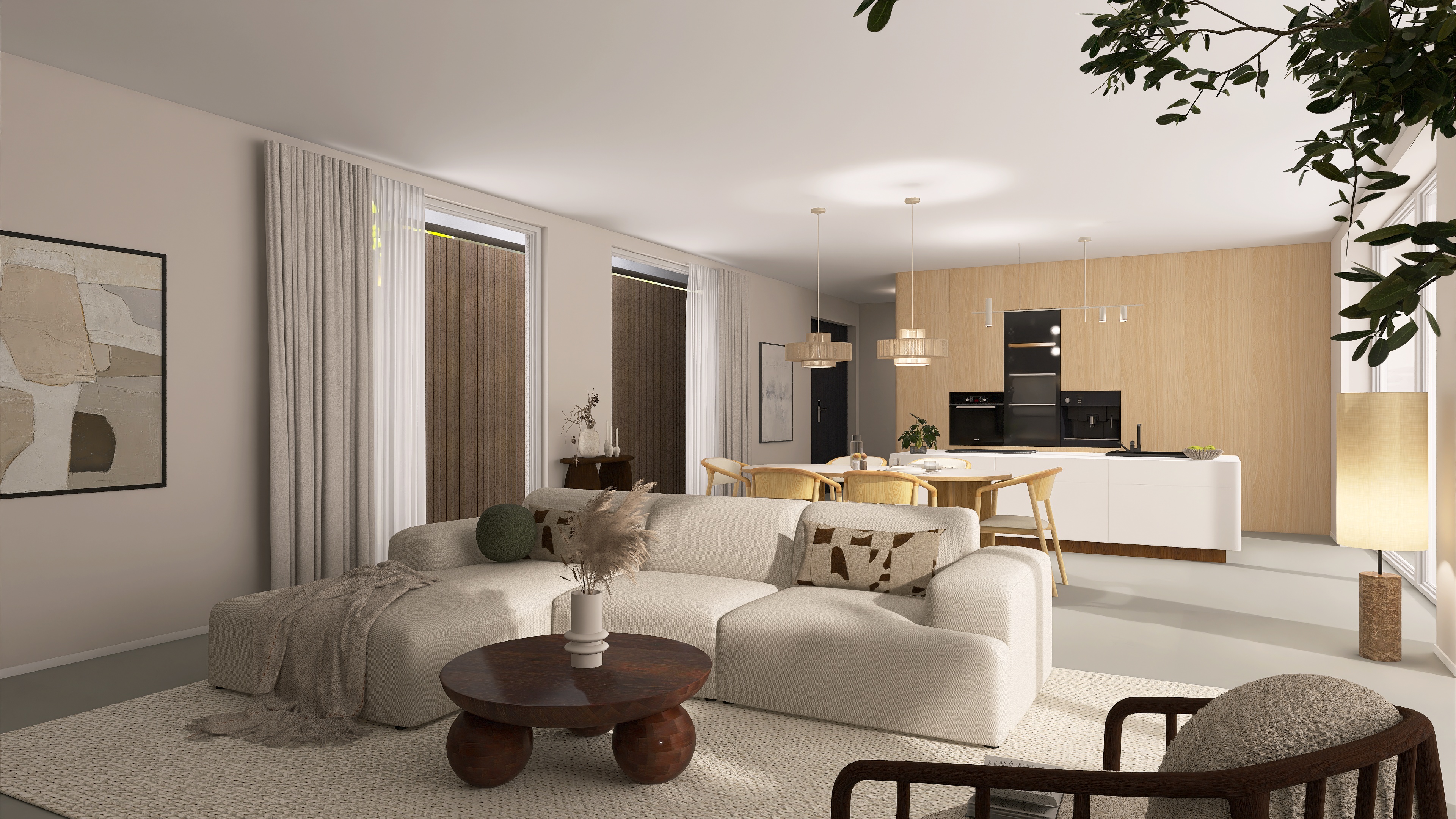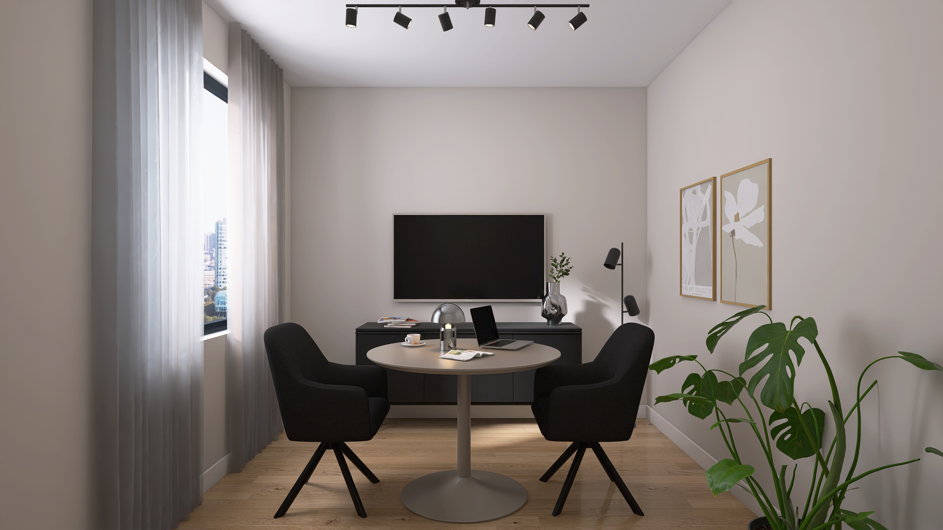 We create a mood board with a floor plan, colour and material concept, lighting and refine the design in two stages.
