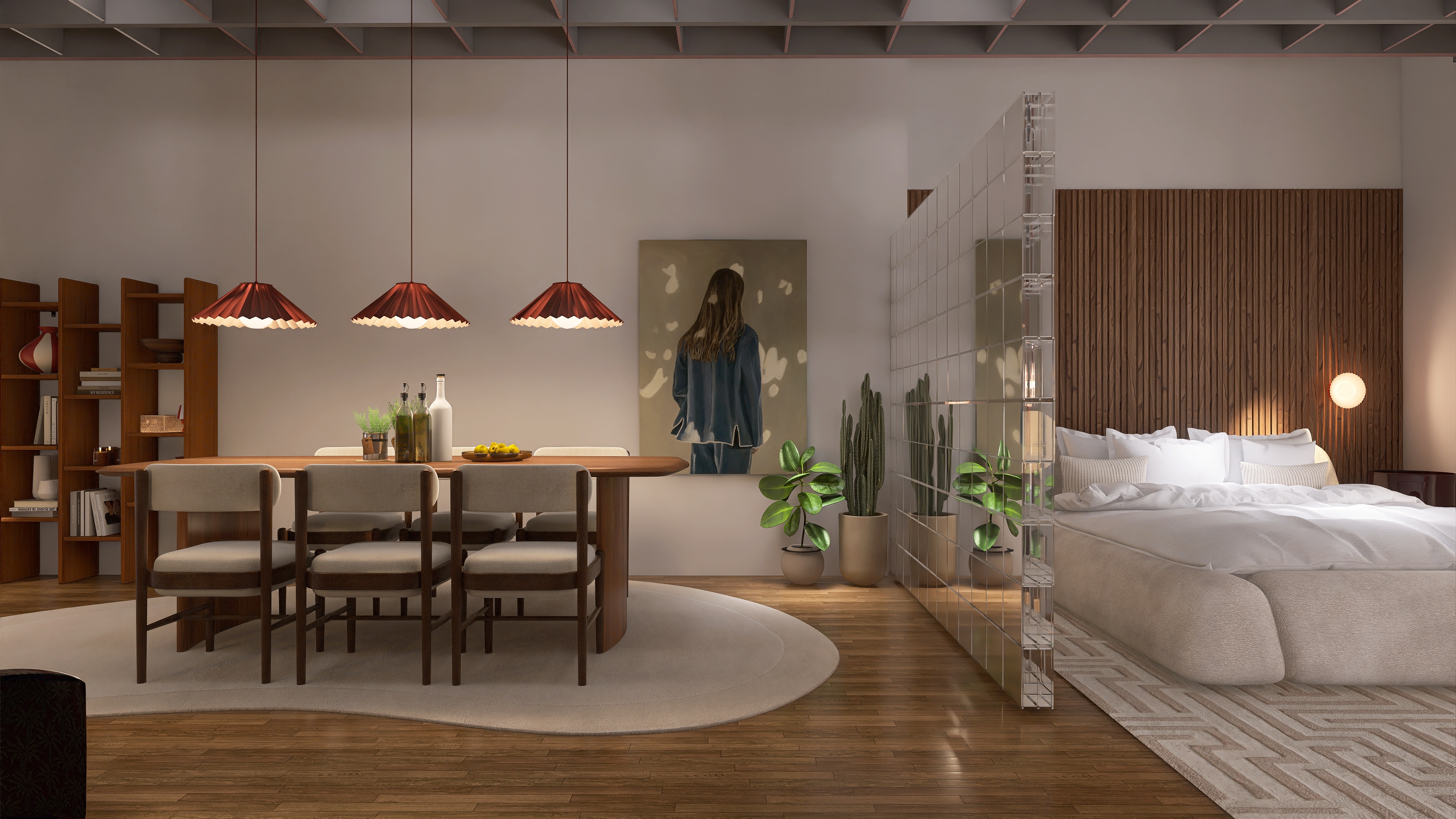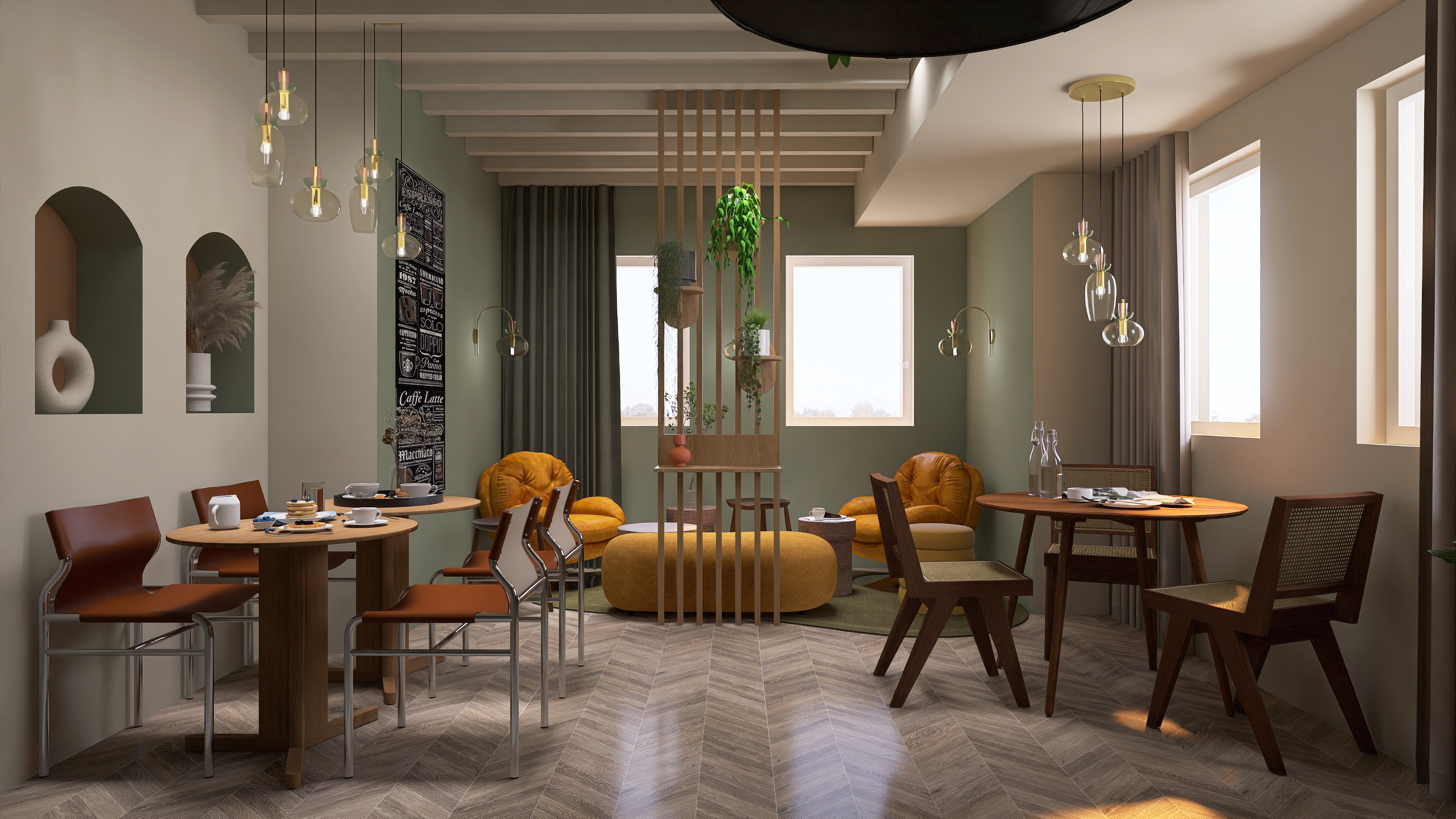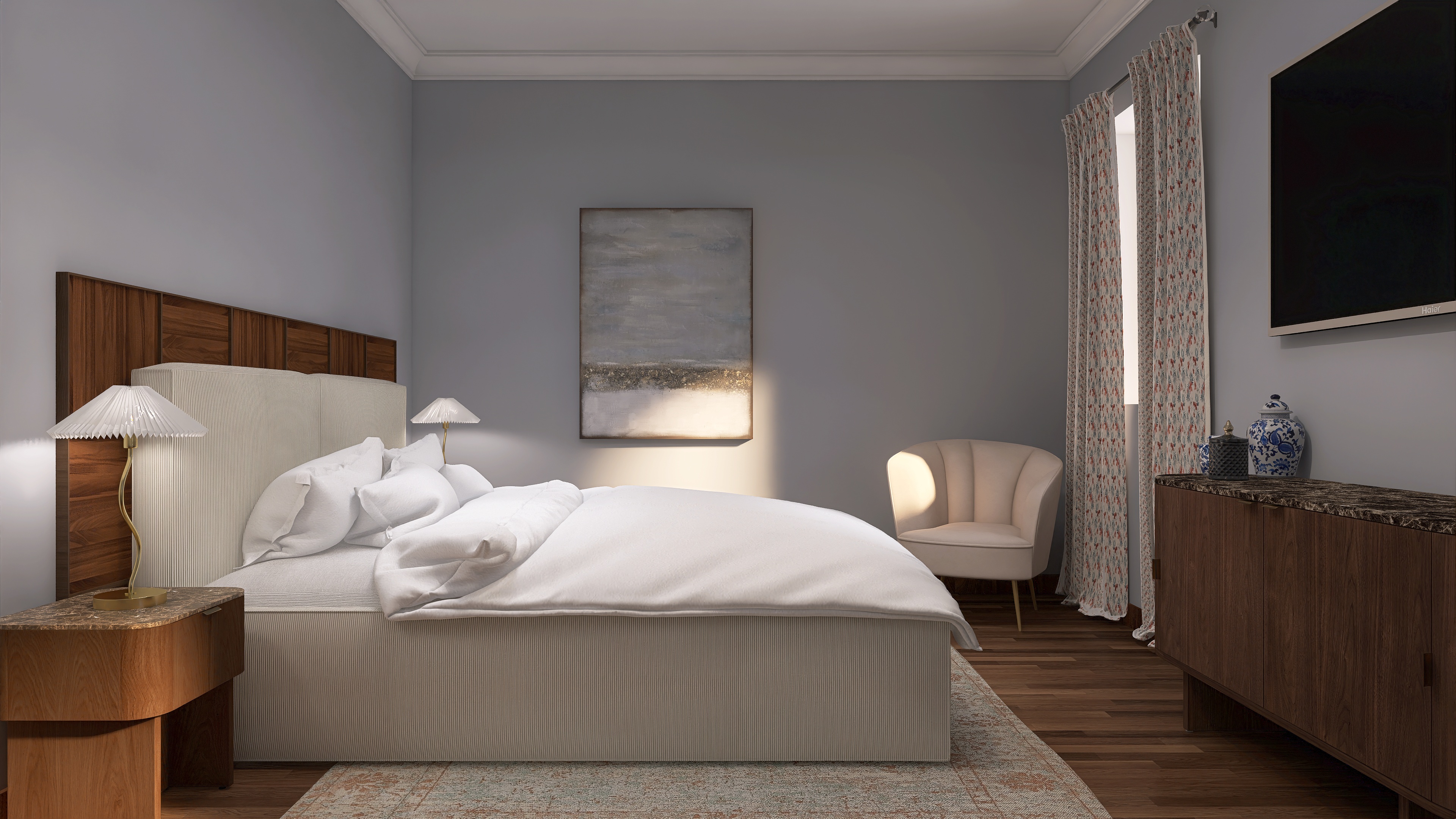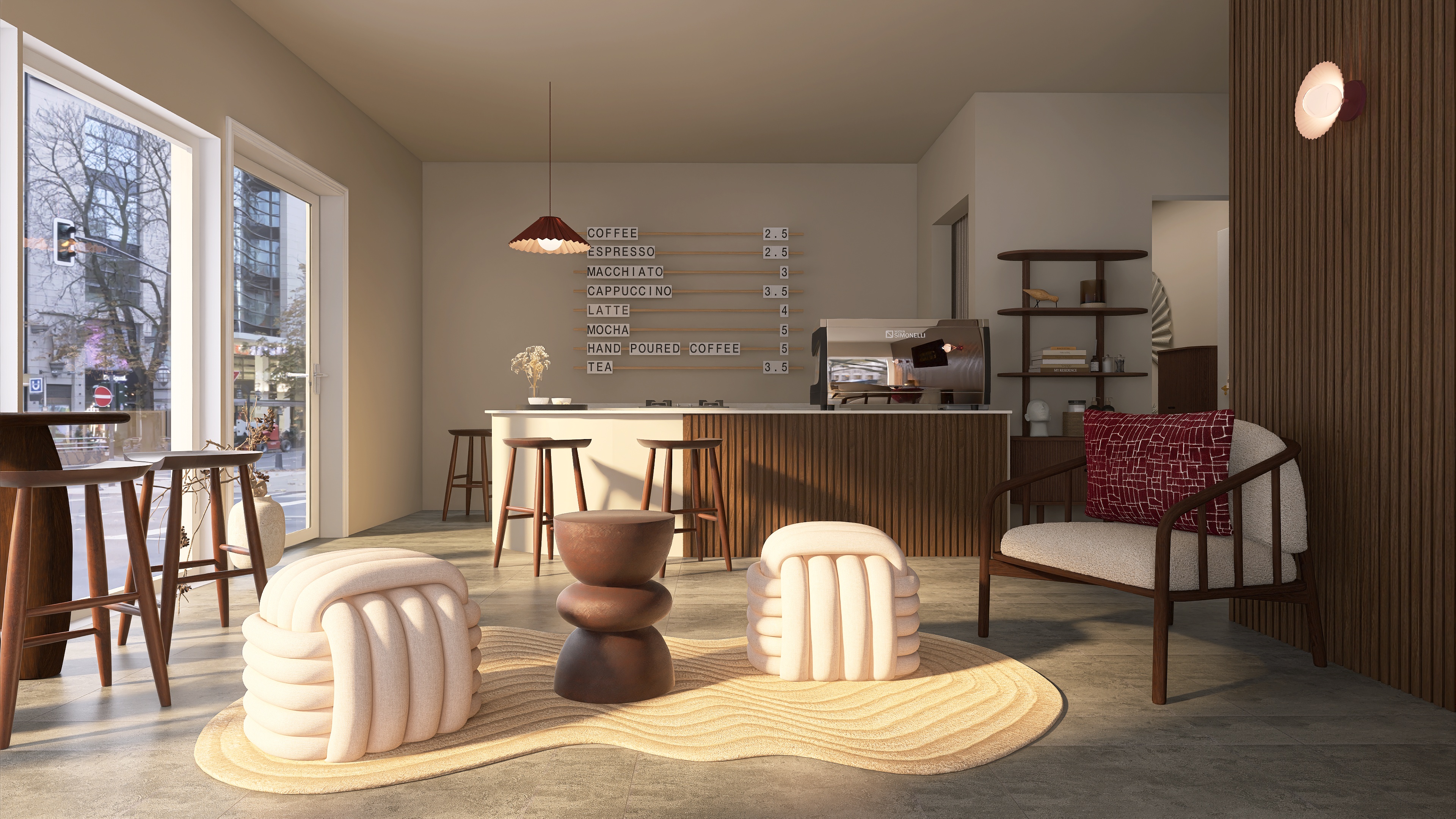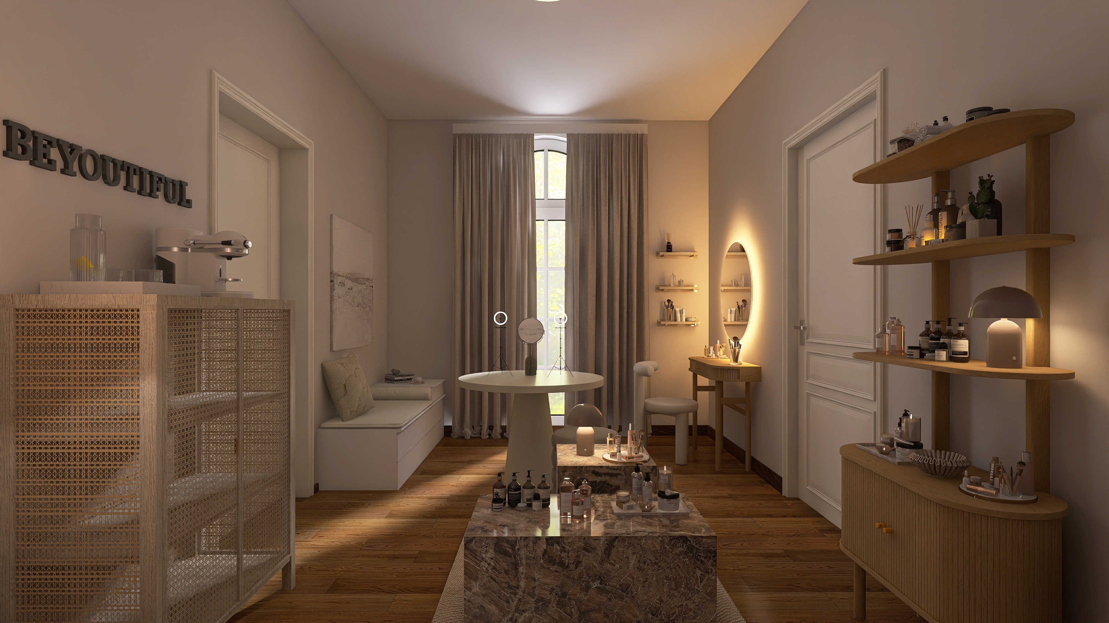 We create a mood board with a floor plan, colour and material concept, lighting and refine the design in two stages.