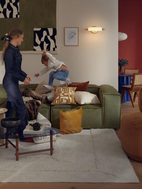 Mit Fransen, warmen freundlichen Farben, bunten Mustern, natürlichen Materialien und noch mehr Fransen holst Du den modernen Hippie Vibe in Deine Wohnung. Die Einrichtung im Boho Style ist ein Mix aus Flohmarktfunden, Selbstgemachtem, Urlaubsmitbringseln, aber auch modernen Designerstücken. Solange diese die Nähe zur Natur und das Farbschema im Raum unterstützen. Kombiniere zum Beispiel eine moderne gemütliche Couch mit einem Beistelltisch aus Rattan und schmücke das Sofa mit bunten Kissen in Ethnomustern.