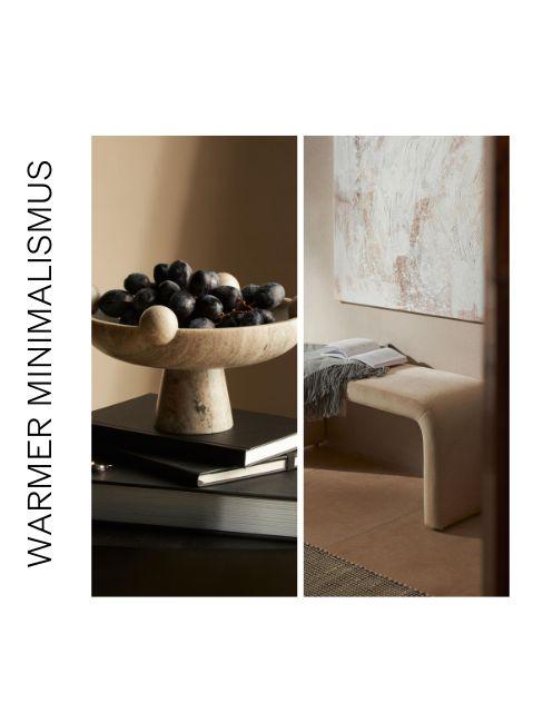 Ob an der Wand oder auf der Kommode – Wohnaccessoires sind für die Gemütlichkeit im Raum zuständig. Da sie grundsätzlich keine Funktion haben, sollten sie im Minimalismus aber eher sparsam eingesetzt werden. Setze also lieber auf ein stylisches Statement-Piece anstatt auf mehrere, kleine Deko-Elemente. Auch gemütliche Kissen, Decken und Felle, die für das Nonplusultra an Gemütlichkeit stehen, dürfen einziehen.