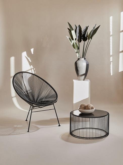 Monstera im Topf auf einem kleinen Tisch neben einem Stuhl